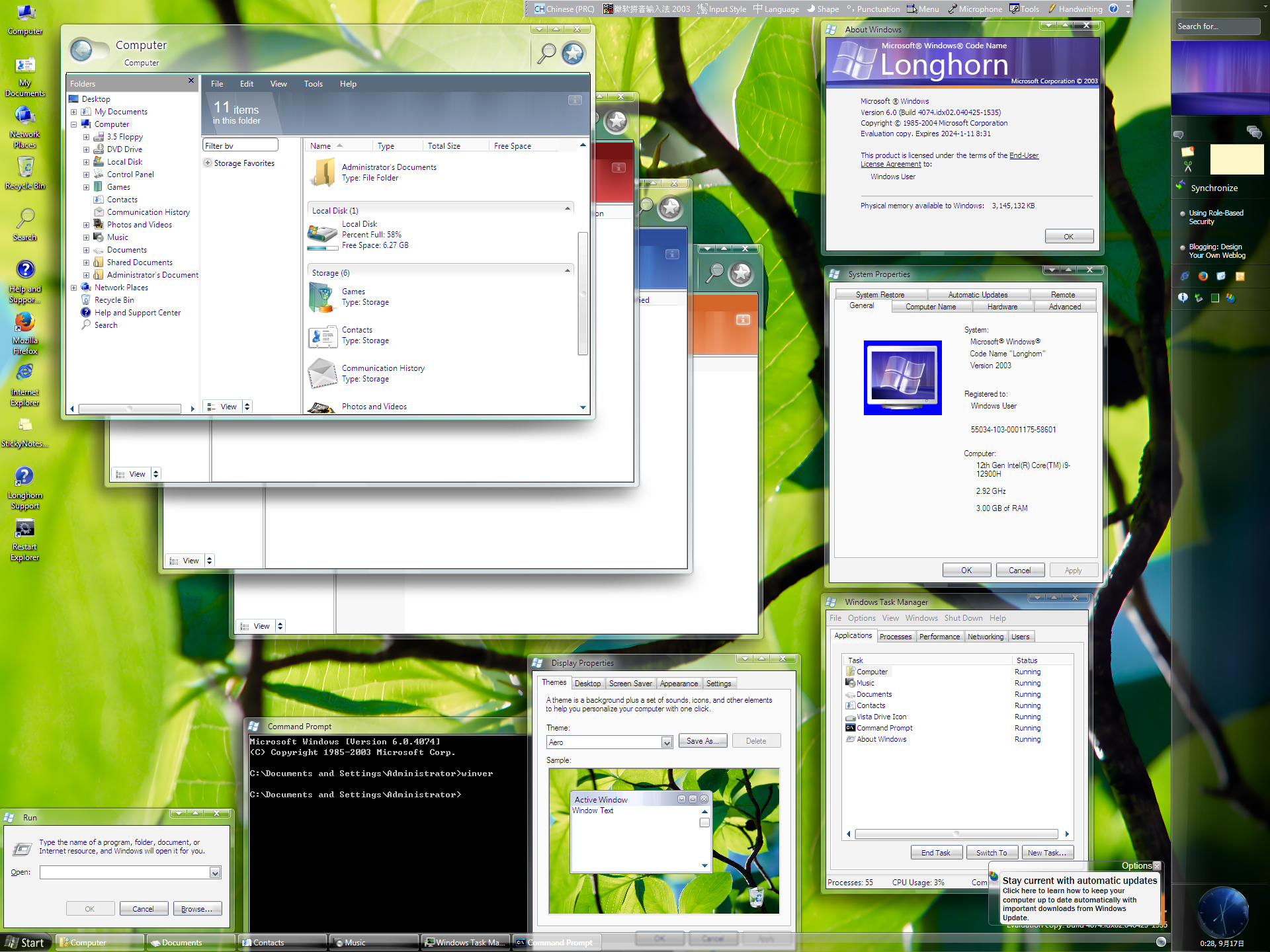 19.针对中文版本安装了 Windows Longhorn 4074 汉化包 11.0,感谢该汉化程序的作者 WinBetaUser。(点击用户名进入用户主页)(你也可以打开 [汉化包发布页面] 查看详情)